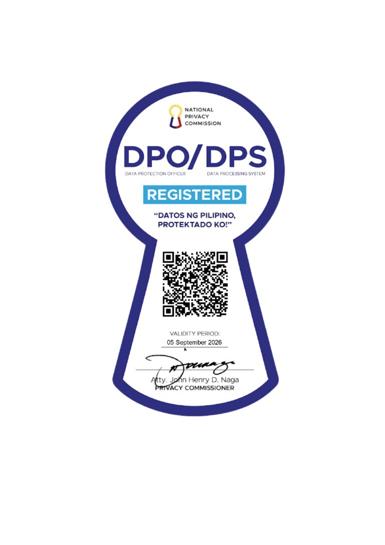 Our goal is to demonstrate our commitment to compliance with business, legal and regulatory requirements pertinent to the Data Privacy Act of 2012 (DPA), cooperating fully with the National Privacy Commission (NPC), and protecting the right to privacy of our stakeholders. We value your privacy as much as we value ours. We are aware that personal data comprises one’s identity and in this modern times, personal and sensitive information’s confidentiality is of utmost importance.